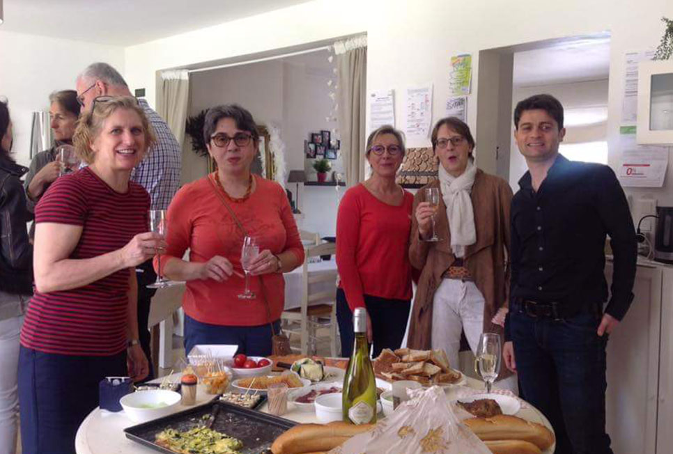 Possibility of different generations to discuss in French, English or any other language having a drink or a bite.